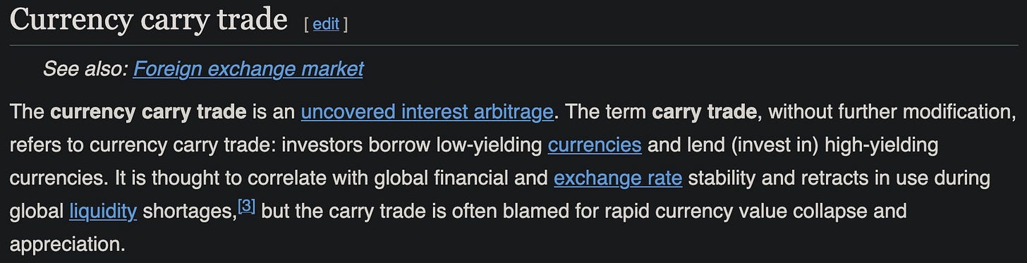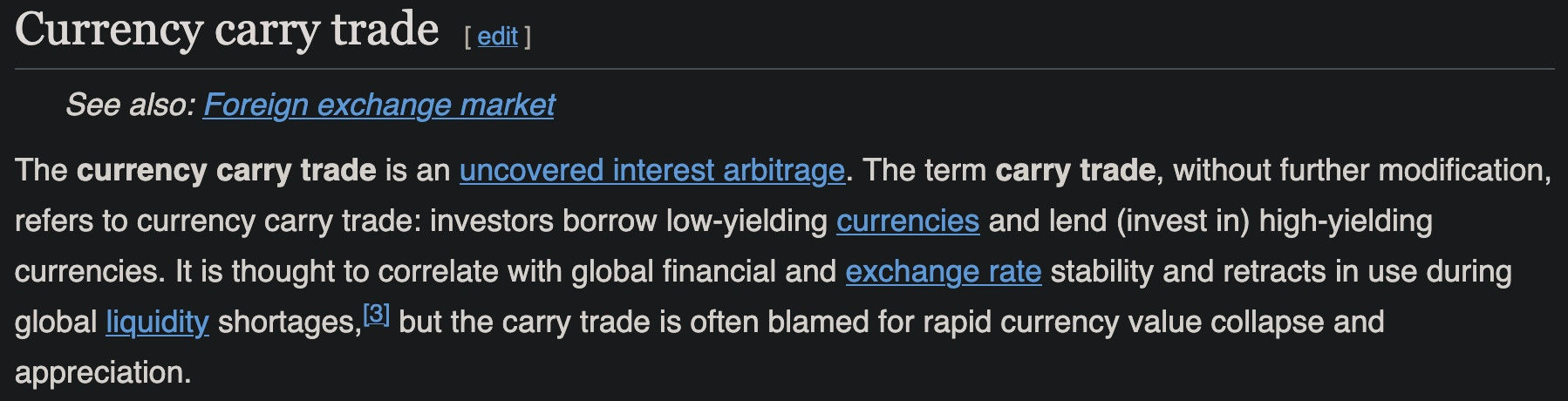 (LINK to wiki: https://en.wikipedia.org/wiki/Carry_(investment)#Currency_carry_trade)