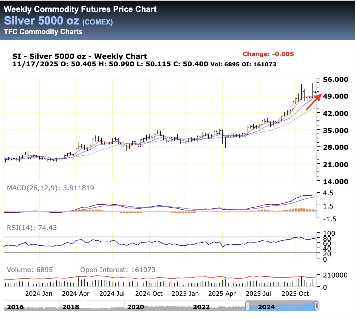 LINK Silver chart here: https://futures.tradingcharts.com/chart/SV/W