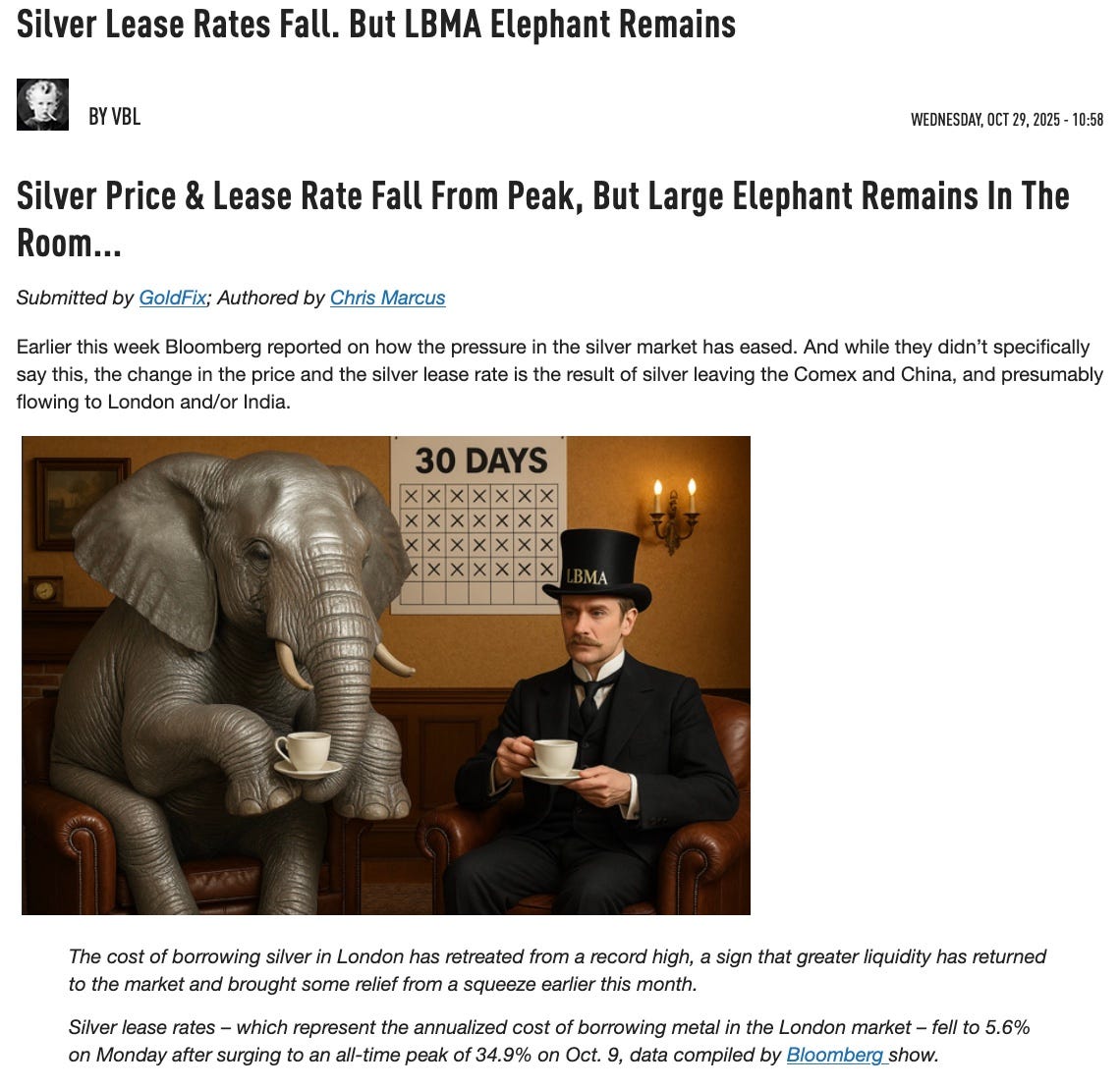 Link to ZeroHedge article: https://www.zerohedge.com/news/2025-10-29/silver-lease-rate-fall-elephant-remains