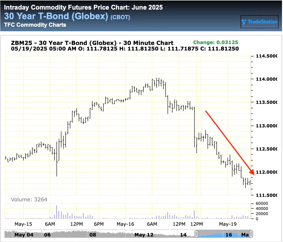 Note that the Moody’s announcement caused a spike in interest rates which has continued in early Sunday T-Bond trading: