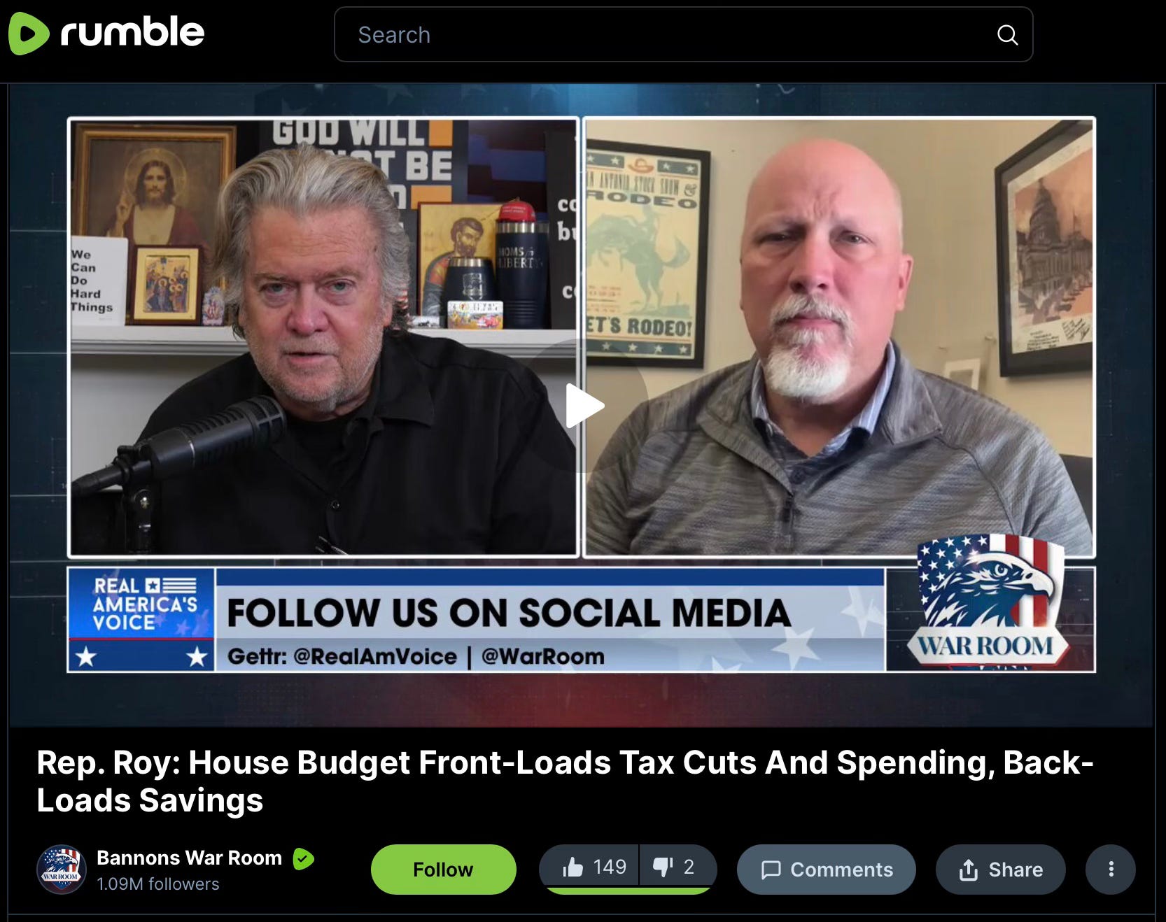 There is much press regarding the difficulty House Speaker Johnson is having at getting a budget bill passed. Congressman Chip Roy presented concerns about the spending and then was interviewed by Steve Bannon: